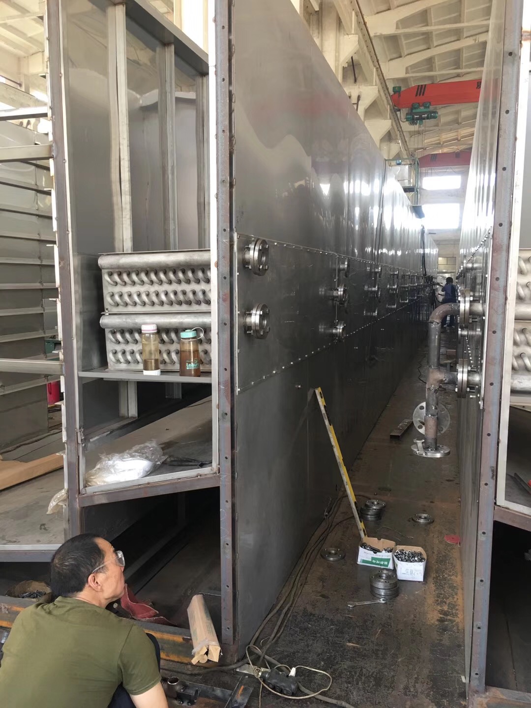 1、換熱器與網(wǎng)帶干燥室分開布置,在干燥室側(cè)面另設(shè)換熱器室,有效避免物料粉粒與換熱器的不良接觸(如粉粒料掉漏在換熱器上影響換熱效果等問題)。