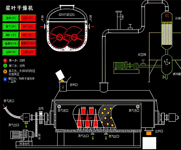 3.由于所需熱量全部由空心葉片和夾套提供,排氣濕度降低,僅需補(bǔ)充少量熱空氣即可,粉塵夾帶少,尾氣處理簡(jiǎn)便,無(wú)需除塵等輔助設(shè)備。
