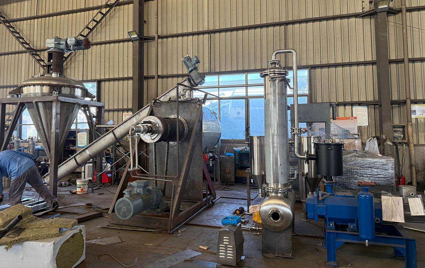 真空干燥單元:由耙式真空干燥機、導(dǎo)熱油爐、真空泵及真空管路組成,通過 “真空降沸點 + 導(dǎo)熱油供熱” 實現(xiàn)物料低溫干燥。