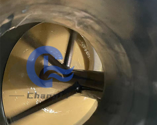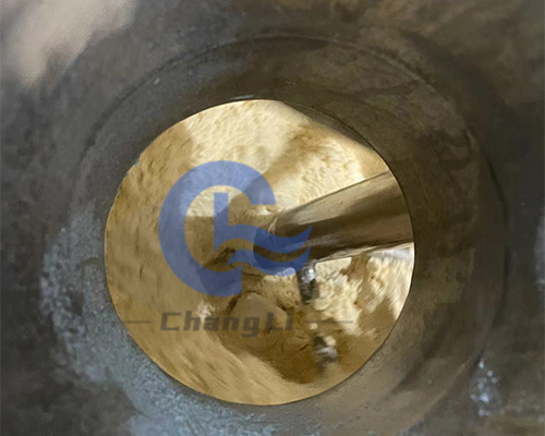 采用低剪切力的螺帶攪拌槳,在低轉速低能量消耗下輕柔混合物料。混合的強度和混合時間都較低。