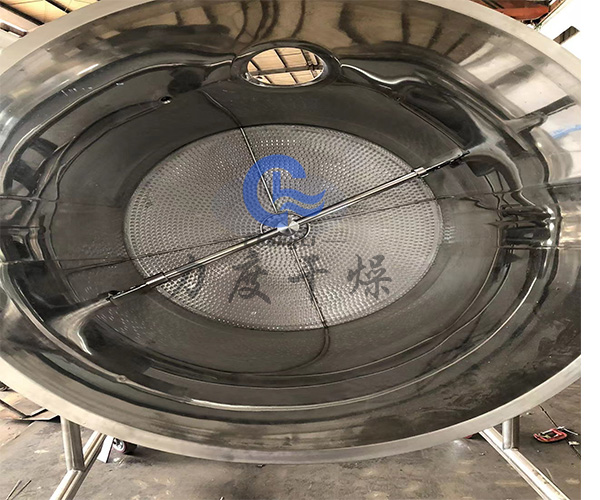 篩板具有渦旋出風(fēng)功能,空氣通過篩板后能形成強(qiáng)烈的旋流,帶動(dòng)物料在流化狀態(tài)下作回旋運(yùn)動(dòng),避免了粉料和濕顆粒從篩板處掉落,其干燥 效率高。